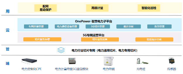 本測(cè)試床依托OnePower-智慧電力子平臺(tái),主要包括卡、連接、終端、切片管理、統(tǒng)計(jì)分析、系統(tǒng)管理、告警管理等關(guān)鍵能力。有別于以往的移動(dòng)通信網(wǎng)絡(luò)發(fā)展模式,依托5G網(wǎng)絡(luò)能力開(kāi)放和切片技術(shù),未來(lái)該平臺(tái)將為電網(wǎng)企業(yè)提供更豐富的、更多元化、更靈活的網(wǎng)絡(luò)切片服務(wù)管理能力,同時(shí)平臺(tái)自身也以更開(kāi)放的架構(gòu),向電力內(nèi)部業(yè)務(wù)提供支撐服務(wù)。