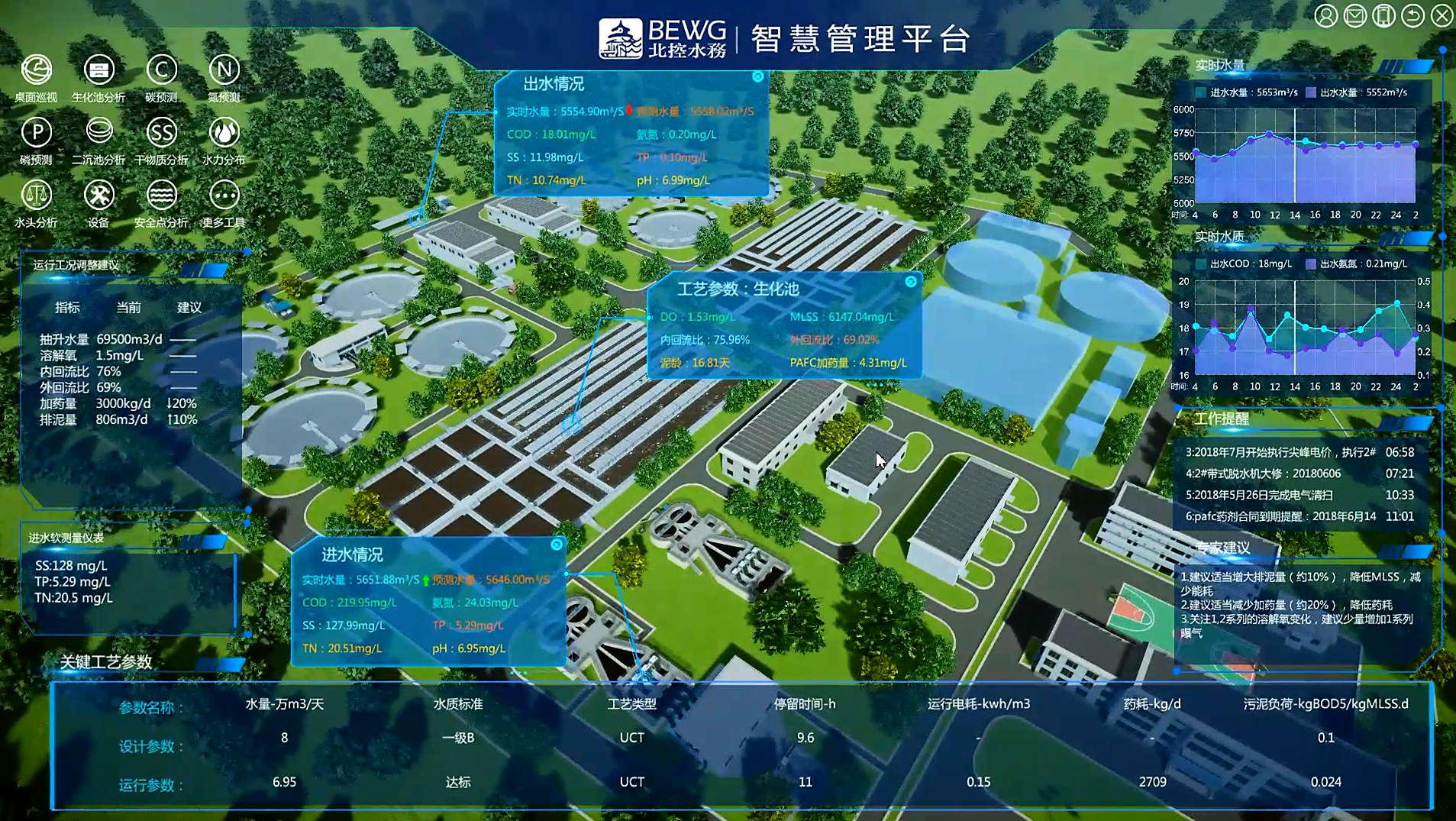 2018年4月22日,在第八屆中國(guó)水業(yè)院士論壇上,北控水務(wù)將自主開發(fā)的“污水廠數(shù)字雙胞胎”概念版向水行業(yè)內(nèi)進(jìn)行了發(fā)布,以三維虛擬水廠為基礎(chǔ)的數(shù)據(jù)可視化形式,基于企業(yè)云及IoT、大數(shù)據(jù)的高效數(shù)據(jù)/業(yè)務(wù)流轉(zhuǎn)體系,創(chuàng)新的運(yùn)用在線模擬與大數(shù)據(jù)分析技術(shù)打造該系統(tǒng)智慧內(nèi)核,實(shí)現(xiàn)數(shù)據(jù)轉(zhuǎn)化為信息,輔助人員決策,引起與會(huì)者濃厚的興趣與強(qiáng)烈反響。