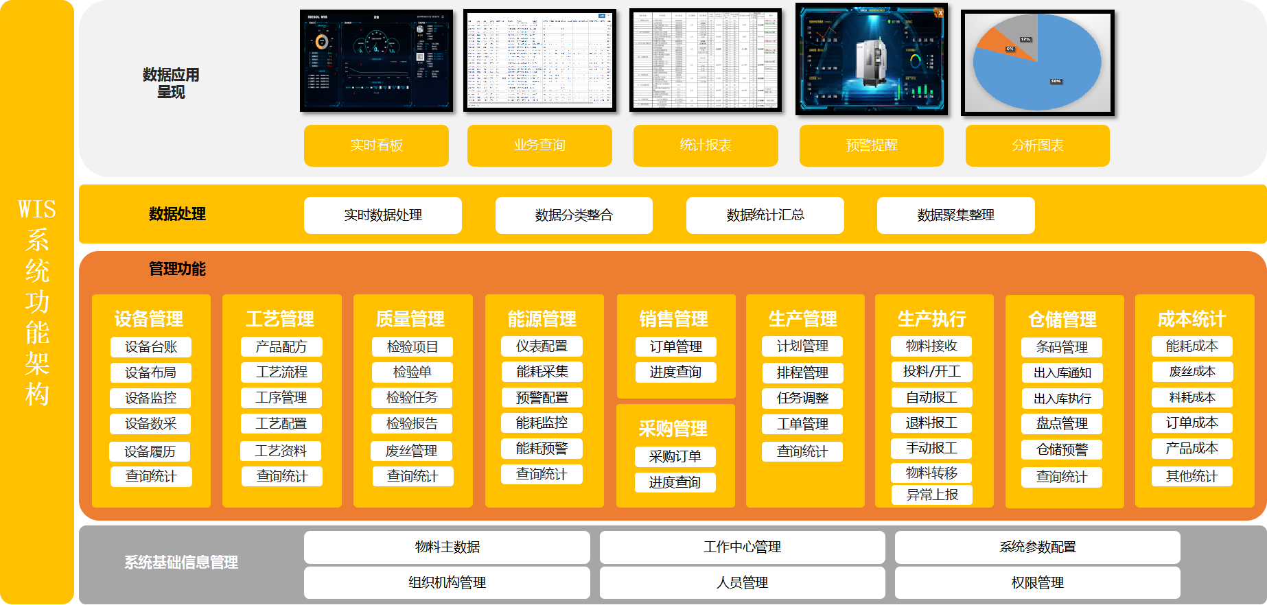項目通過工廠數字化制造運營系統(iSESOL WIS)建設,以iSESOL工業互聯網平臺為核心,串聯能耗管理模塊、設備運行監控模塊、工藝管理模塊、生產管理模塊、生產執行模塊、質量管理模塊、倉儲管理規模等,實現企業生產管理信息化,從銷售訂單創建、計劃自動分解、生產任務自動排程、能耗管理優化到質量追溯、倉儲管理全過程的信息化和智能化,充分利用信息化的手段,達到提高生產效率、降低生產成本、精細生產管理的目標,為客戶提供可跟蹤質量的優質產品。