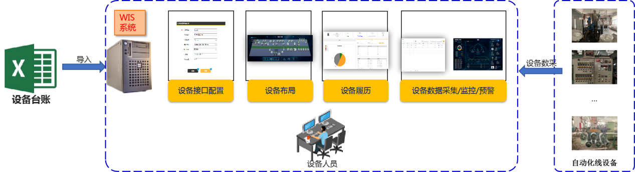 2)將生產設備聯網,設備運行數據采集及相關工段設備的能耗數據采集,解決設備運行數據孤島問題,實時掌握設備運行工藝參數、對工藝參數進行監控預警,保證產品生產質量,實時掌握設備能耗情況及全廠各部門的能耗情況、對全廠各部門能耗進行監控管理及統計分析。