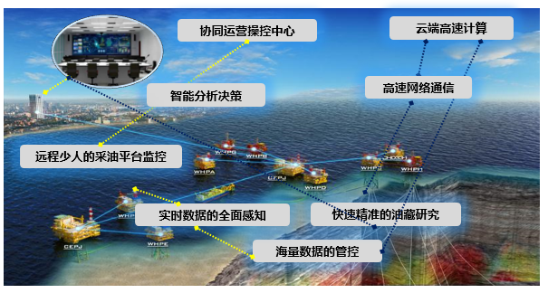 通過(guò)提高海上平臺(tái)的生產(chǎn)監(jiān)測(cè)和優(yōu)化控制能力,對(duì)開(kāi)發(fā)生產(chǎn)全過(guò)程進(jìn)行實(shí)時(shí)監(jiān)測(cè)、預(yù)警診斷、主動(dòng)優(yōu)化、遠(yuǎn)程操控、協(xié)同運(yùn)營(yíng)和輔助決策,實(shí)現(xiàn)一體化智能管控。油田運(yùn)營(yíng)由目標(biāo)導(dǎo)向、分工合作的方式向數(shù)字化驅(qū)動(dòng)、智能化協(xié)同的一體化方式轉(zhuǎn)變,創(chuàng)建“智能、安全、高效”的新型海上油氣開(kāi)采運(yùn)營(yíng)模式。