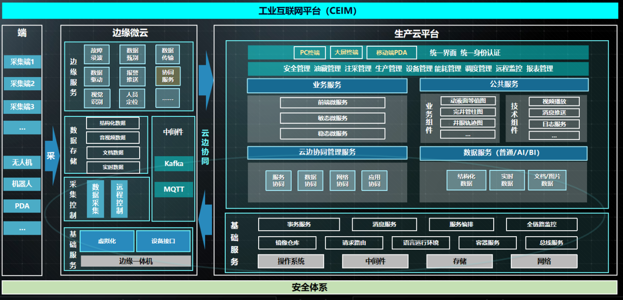 基于渤海智能油田試點(diǎn)建設(shè)項(xiàng)目搭建的工業(yè)互聯(lián)網(wǎng)平臺(tái),是多人協(xié)作的平臺(tái),用于幫助開(kāi)發(fā)者提升數(shù)據(jù)價(jià)值,實(shí)現(xiàn)數(shù)據(jù)驅(qū)動(dòng)的業(yè)務(wù)創(chuàng)新。依托海油生產(chǎn)云平臺(tái),擴(kuò)展邊緣微云,通過(guò)邊緣計(jì)算、虛擬化、容器化、AI、IoT、微服務(wù)、數(shù)字孿生等技術(shù),構(gòu)建海量實(shí)時(shí)數(shù)據(jù)采、存、管、用、算的端+邊+云應(yīng)用高效協(xié)同架構(gòu),以分析和預(yù)測(cè)為核心,內(nèi)置了百余種數(shù)據(jù)挖掘算法,立足推動(dòng)企業(yè)“上云用數(shù)賦智”行動(dòng)。以“工業(yè)互聯(lián)+端、邊、云協(xié)同”藍(lán)圖為指導(dǎo),以業(yè)務(wù)互聯(lián)為基礎(chǔ),基于“智能終端+工業(yè)互聯(lián)+云服務(wù)”創(chuàng)新模式,為“智能、安全、高效”的新型海上油氣開(kāi)采運(yùn)營(yíng)模式提供技術(shù)支撐。