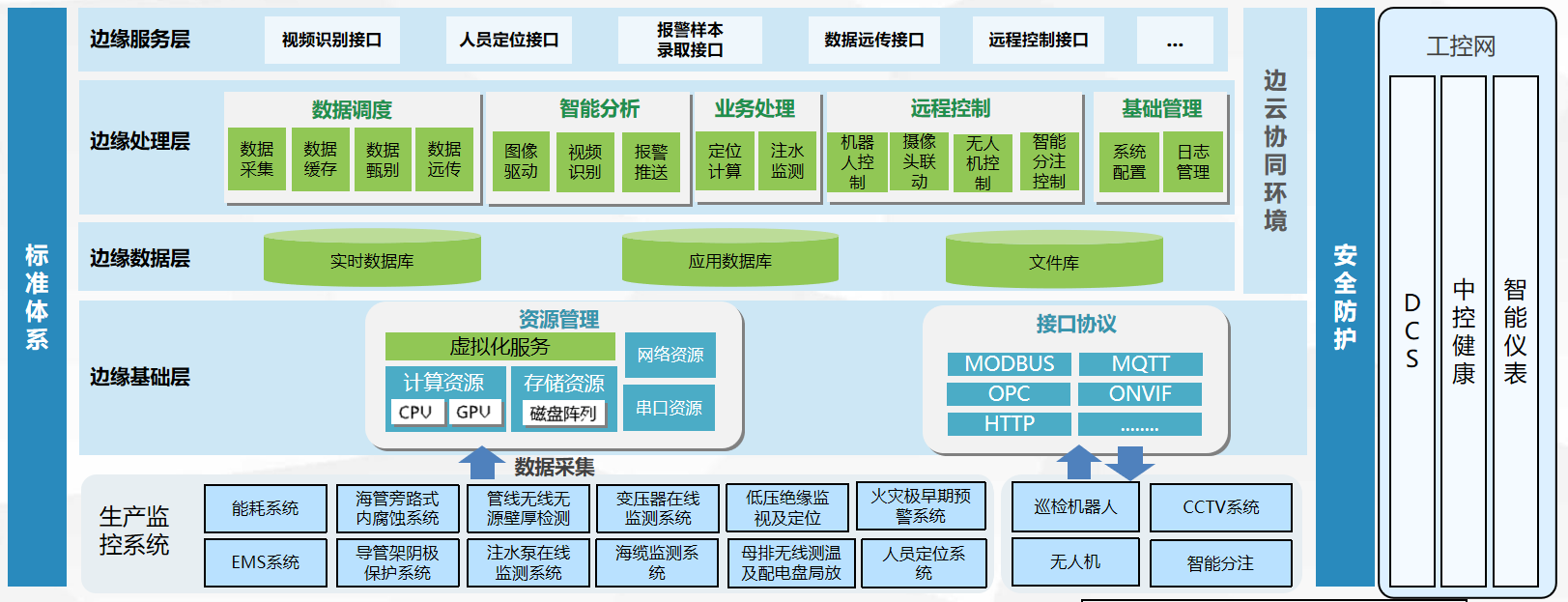 基于工業(yè)互聯(lián)網(wǎng)平臺(tái),將各類傳感設(shè)備、無(wú)人機(jī)、機(jī)器人、PDA、定位手環(huán)等設(shè)備,通過(guò)邊緣計(jì)算建立支持多協(xié)議的實(shí)時(shí)數(shù)據(jù)通道,實(shí)現(xiàn)海上平臺(tái)設(shè)備與系統(tǒng)間的數(shù)據(jù)互聯(lián)、信息互通。