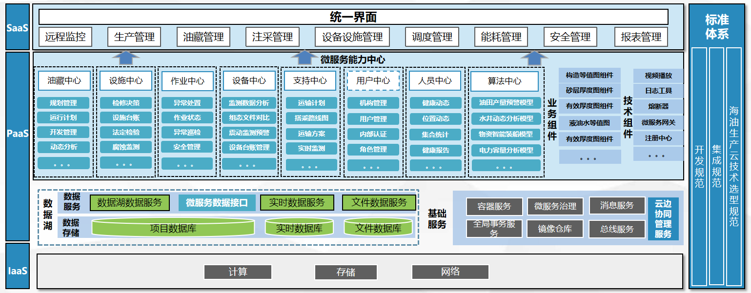 綜合運(yùn)用AI識(shí)別、機(jī)理分析、知識(shí)推理等綜合技術(shù)手段,及時(shí)發(fā)現(xiàn)油藏矛盾和潛力,推薦合理措施方案,讓油藏動(dòng)態(tài)管理更精準(zhǔn)、精細(xì)、高效,及時(shí)發(fā)現(xiàn)油水井工況異常問(wèn)題、地面水系統(tǒng)的不平衡矛盾,推送處置方案及建議,保障生產(chǎn)的安全、平穩(wěn)、高效運(yùn)行。針對(duì)業(yè)務(wù)特性構(gòu)建云端應(yīng)用業(yè)務(wù)架構(gòu),具體架構(gòu)圖如下: