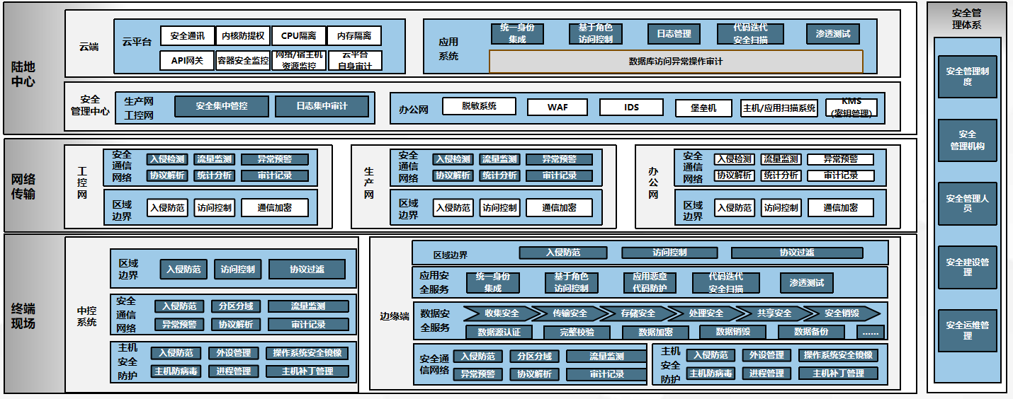 網(wǎng)絡(luò)安全防護(hù)按照等保2.0二級(jí)的要求,建立 “一個(gè)中心三層保護(hù)”的技術(shù)防控體系和一套完備的管理體系。