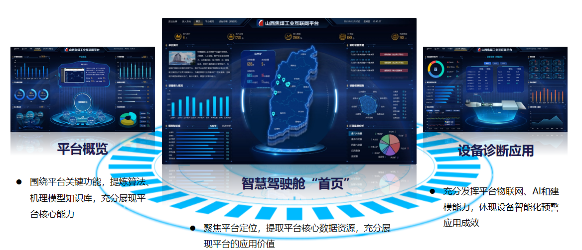 形成完整的工業(yè)互聯(lián)網(wǎng)平臺(tái)技術(shù)架構(gòu)體系,建立7大核心子平臺(tái);完成 9 個(gè)下屬煤礦,共計(jì)52 個(gè)系統(tǒng)統(tǒng)一接入至平臺(tái);打造智能駕駛艙,賦能精益化管理。