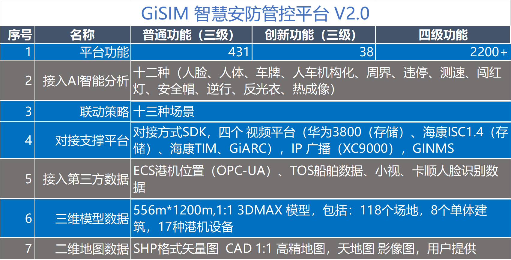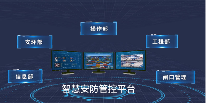 智慧安防管控平臺:融合港口內各個子系統,實現數據互聯互通,實現整個港口(人、車、機、物)的一體化管控。
