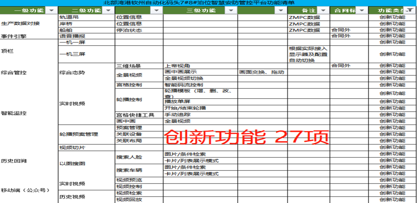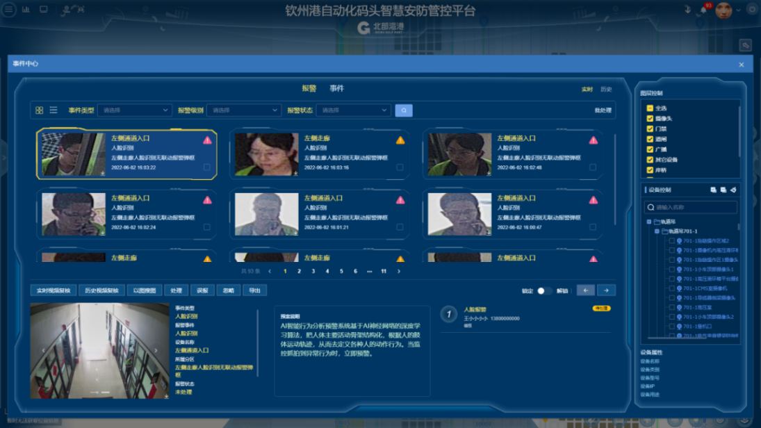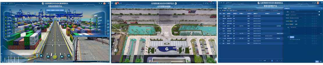 欽州自動化集裝箱碼頭智慧安防管控系統創新點:多部門多業務,雙區人車識別,AR融合,路徑漫游、軌跡追溯、網絡設備監管、多屏交互;