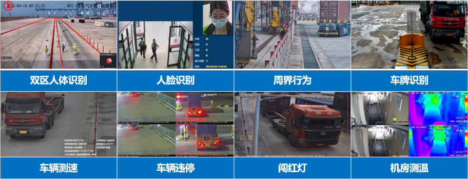 智能應用:周界、人車結構化、堆場測溫預警、安全帽,車輛逆行。