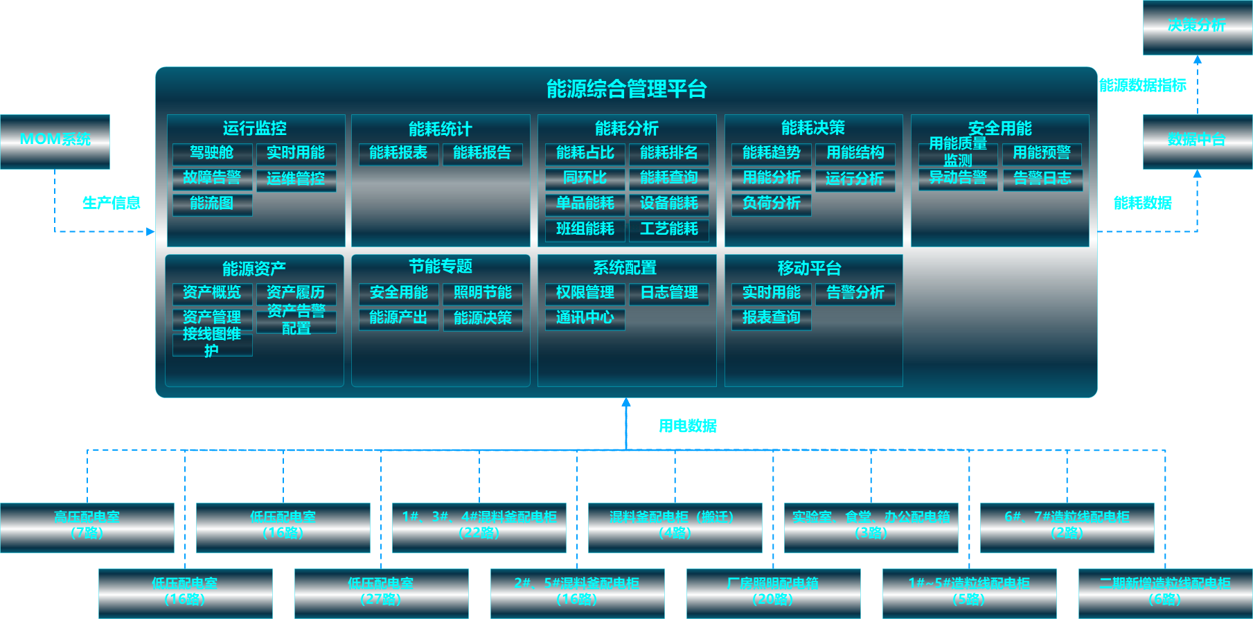 (五)要建立全面的能源綜合管理平臺(tái),開(kāi)辟綠色可持續(xù)制造發(fā)展之路,全面管控生產(chǎn)用能及輔助用能,優(yōu)化用能結(jié)構(gòu),滿(mǎn)足國(guó)家碳排放相關(guān)政策,平臺(tái)要有不同基地間的擴(kuò)展功能,后續(xù)形成以集團(tuán)總部為監(jiān)控中心各基地能源管控全覆蓋的持續(xù)用能優(yōu)化迭代系統(tǒng)。
