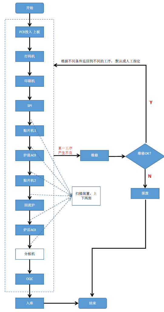 在生產(chǎn)過程管理的MES系統(tǒng)中,實現(xiàn)在SMT貼片生產(chǎn)過程的PCB掃碼、物料上料以及生產(chǎn)設備的數(shù)據(jù)采集和關聯(lián),以及生產(chǎn)過程的物料使用情況追溯可視。