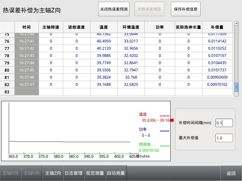 (2) 、熱誤差預(yù)測(cè):根據(jù)事先建立的熱誤差模型,預(yù)測(cè)當(dāng)前溫度和轉(zhuǎn)速下的熱誤差量,將其發(fā)送給CNC進(jìn)行補(bǔ)償。