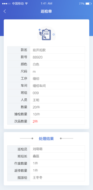 服裝智能云生產執行APP