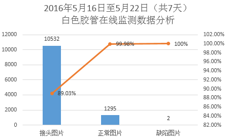 本項目重點圍繞質量檢測需要的數據采集、數據傳輸以及數據處理和比對等主要環節。采集生產線電壓、擠膠壓力、冷卻溫度、牽引速度、運轉速度等數據,數據流量約為1MB/s。通過千兆高速有線傳輸網絡,傳輸至大數據計算分析平臺。同時采用4部工業攝像機對生產線末端輸出機的成品進行圖像拍照,每部攝像機的數據流量最大為29.5M/s,四部攝像機的數據流量為118M/s,每天產生的圖像數據量約為3T ,也采用千兆有線網絡進行傳輸。經過在線質量實時判決系統分析對比,將對比分析結果數據傳輸至大數據計算分析平臺,結合生產線采集數據進行智能決策分析。隨著對存儲量不斷增加的數據進行挖掘分析,生成產品質量發展趨勢預測和生產線狀態預判,降低生產廢品率,縮短生產周期,提高企業的生產管理效率。