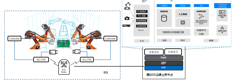 5G高速率所保證的超高清晰度視頻可大大提高人工智能分析的準(zhǔn)確率,并可利用網(wǎng)絡(luò)切片和移動(dòng)邊緣計(jì)算技術(shù)在降低傳輸時(shí)延同時(shí),為美的快速部署端到端工業(yè)專(zhuān)網(wǎng),解決工業(yè)企業(yè)所關(guān)注的數(shù)據(jù)不出廠問(wèn)題。