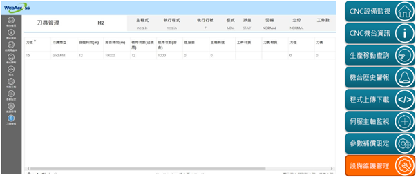 通過WebAccess/CNC可設置預警保養次數,并監控刀具的累計使用次數,在到達界限值時及時預警通知保養,以減少更換時間,保障生產品質。