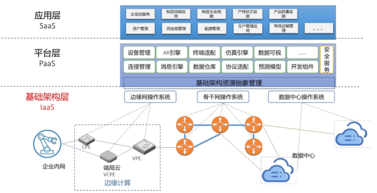 在基礎(chǔ)設(shè)施層之上提供對(duì)信息資源的控制功能,包括數(shù)據(jù)中心云平臺(tái)、工業(yè)應(yīng)用平臺(tái)等。