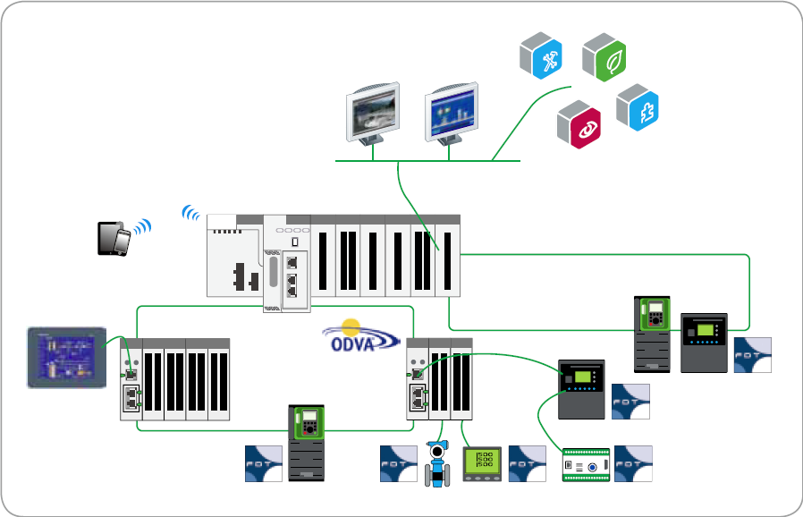 本方案采用工業級以太網光纖環網方案,確保網絡架構的高效和冗余。目前在工業領域主流的工業以太網協議包括:Modbus TCP/IP、EtherNet/IP、ProfiNet、EtherCAT、POWERLINK等。本方案中的Modicon系列高端PLC系統,全面支持Modbus TCP/IP和EtherNet/IP兩大工業以太網協議。Modicon系列PLC系統的設計基于開放的以太網技術,從而有效地優化了設備互連和通信。配合性能優越的X80 通用I/O 平臺和靈活易用的Advantys STB/ETB I/O 平臺,可以完美實現系統的集成;強大的控制器提供更高水平的復雜網絡通信、顯示和應用控制的處理能力。