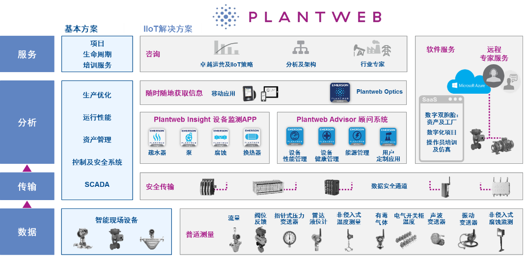 實時的數據、專家知識和移動應用是工業物聯網的基礎,Plantweb數字生態系統不僅包括范圍廣泛的傳感器網絡和網絡安全工具,還包括軟件應用、數據分析和IIoT相關的咨詢及服務,旨在提高過程可靠性、能源效率、安全和整體運營性能,幫助企業有針對性地向著可衡量的目標,逐步實施數字化轉型,實現卓越運營。