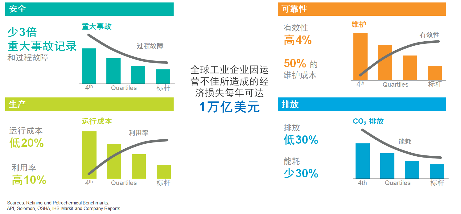 當操作人員無法確保預防性維護計劃順利進行時,現場可能會因意外的設備故障而導致計劃外停機,或由于用于大修的計劃內停車時間過長或太頻繁,造成每年數天的生產損失。在大修期間可能無法完成檢修計劃,工廠或許會因為維修導致維護成本不斷增加,且由于生產損失而導致機會成本上升等挑戰。一些工藝設備的壽命也可能會大大縮減,這可能是被動維護方式所造成的。另一個挑戰是由于管道和船舶老化而造成的效率降低損失。此外,工廠還期望在不增加人工的情況下,提升可靠性。
