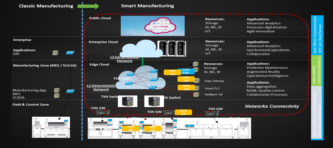 TSN(時間敏感網絡)+ OPC UA(OPC統一架構)成為從傳感器到云端建立全面通訊基礎結構的最佳拍檔。