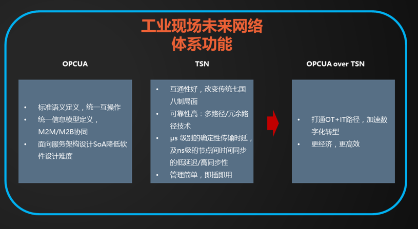 TSN+OPC UA組合提供了一個實時、高確定性并真正獨立于設備廠商的通信網絡,將會在帶寬、安全、互操作、延遲和同步等方面帶來巨大改善。