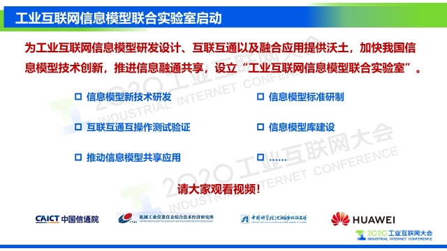 8月30日下午,在2020工業互聯網大會“工業互聯網新技術”主題論壇上,中國信息通信研究院技術與標準研究所副所長曹薊光以《工業互聯網信息模型發展,啟動工業互聯網信息模型聯合實驗室》為題演講,分享了工業互聯網信息模型發展情況,以及工業互聯網產業聯盟(簡稱“聯盟/AII”)牽頭發起的工業互聯網信息模型聯合實驗室的建設情況。