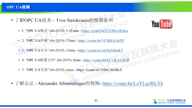 在2020工業互聯網大會“工業互聯網新技術”主題論壇上,OPC基金會中國區首席代表張譽發表題為《OPC基金會與OPC統一架構》的演講,介紹了OPC UA的概念及應用
