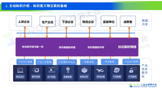 點擊下方鏈接,觀看視頻 專家說 “標識是萬物互聯(lián)的基礎,工業(yè)互聯(lián)網(wǎng)的建設包含網(wǎng)絡、平臺、安全,其中網(wǎng)絡是工業(yè)互聯(lián)網(wǎng)的基礎,標識解析技術屬于工業(yè)互聯(lián)網(wǎng)網(wǎng)絡部分,核心是要解決標識的可信與唯一性、標識數(shù)據(jù)的采集、標識數(shù)據(jù)的共享這三個問題。首先,標識的可信與唯一性是基礎,它保證了產(chǎn)品在全生命周期流轉(zhuǎn)中具有唯一的身份編碼。其次,數(shù)據(jù)是關鍵,企業(yè)通過產(chǎn)品信息數(shù)字化建設,將企業(yè)內(nèi)的研發(fā)、生產(chǎn)、銷售、物流等數(shù)據(jù)匯聚起來,形成產(chǎn)品的數(shù)據(jù)中心,并通過標識解析網(wǎng)絡接入到工業(yè)互聯(lián)網(wǎng)網(wǎng)絡中來,共享建設的目標。產(chǎn)業(yè)的上下游企業(yè)與消費者便可以通過產(chǎn)品標識,在解析網(wǎng)絡中獲取產(chǎn)品相關的信息與數(shù)據(jù)。” 以下是演講PPT 敬請閱讀
