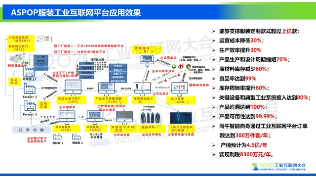 “海思堡是COSMOPlat賦能紡織服裝行業的一個鮮活例子,消費者足不出戶就可以實現在線試衣,量身定制,企業則通過完整的工業互聯網平臺系統架構,實現業務流程的標準化和數據化驅動;全品類大規模定制的全流程數據化和數據實時化,使企業的運營成本降低30%,生產效率提高30%,產品生產和設計周期縮短70%,原料庫存減少60%,成品庫存幾乎為零。相信在不久的將來,我們會看到COSMOPlat賦能更多的紡織服裝企業。”