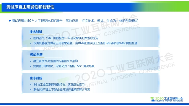 “該測試床的創新性從三個方面來講,一是技術創新,該項目是國內首個5G+機器視覺平臺化解決方案落地應用,攻克了機器視覺算法云化部署難題等;二是模式創新,通過建立新技術測試驗證標準和技術架構,提供了一些模塊化、定制化的智能+5G的測試場景;三是生態創新,5G跟工業互聯網場景結合的實踐落地應用,在國內還比較少,海爾卡奧斯聯合5G產業上下游供應商打造了一個通用的解決方案?!?/p>