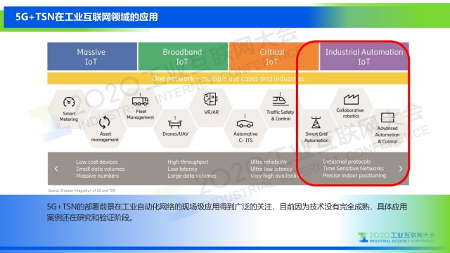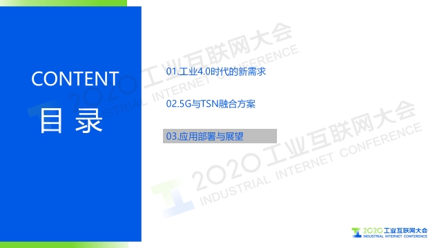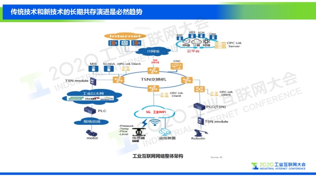 在2020工業互聯網大會“工業互聯網網絡”主題論壇上,中國移動研究院物聯網技術與應用研究所所長肖善鵬發表題為《5G+TSN 雙劍合璧——迎接工業互聯網新時代》的演講,介紹了5G+TSN在工業自動化網絡中的部署情況。