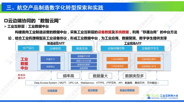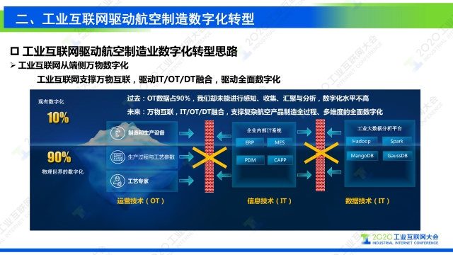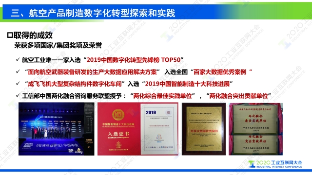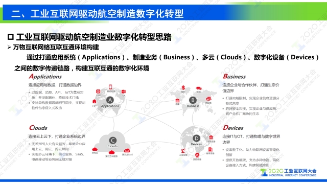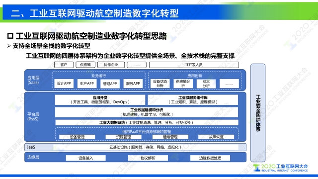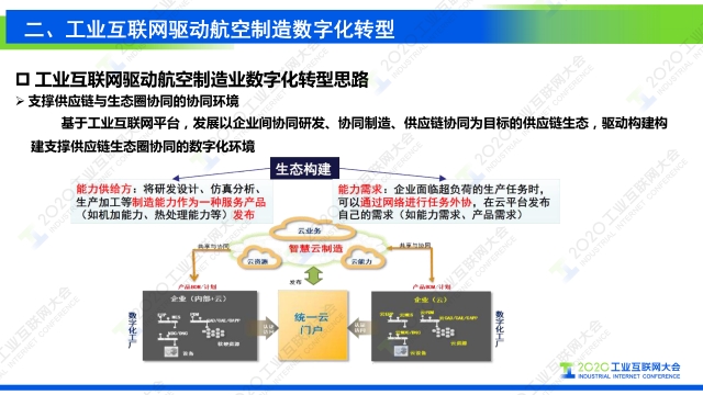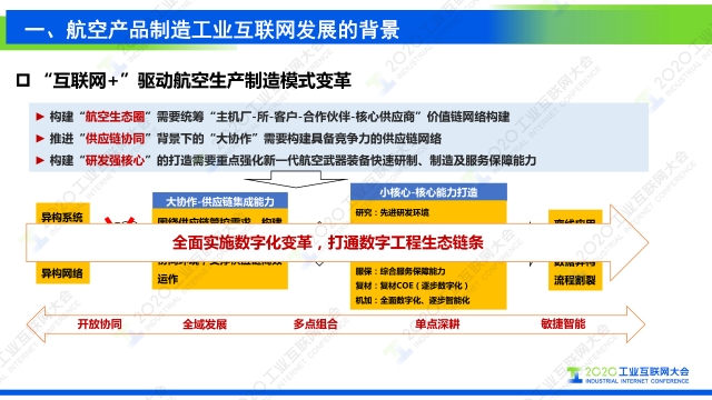 在2020工業互聯網大會“工業互聯網行業應用”主題論壇上,航空工業成都飛機工業集團有限公司流程與信息化部主任謝剛發表題為《工業互聯網支撐復雜航空產品制造數字化轉型》的演講,圍繞工業互聯網分享了航空制造企業數字化轉型升級路徑。