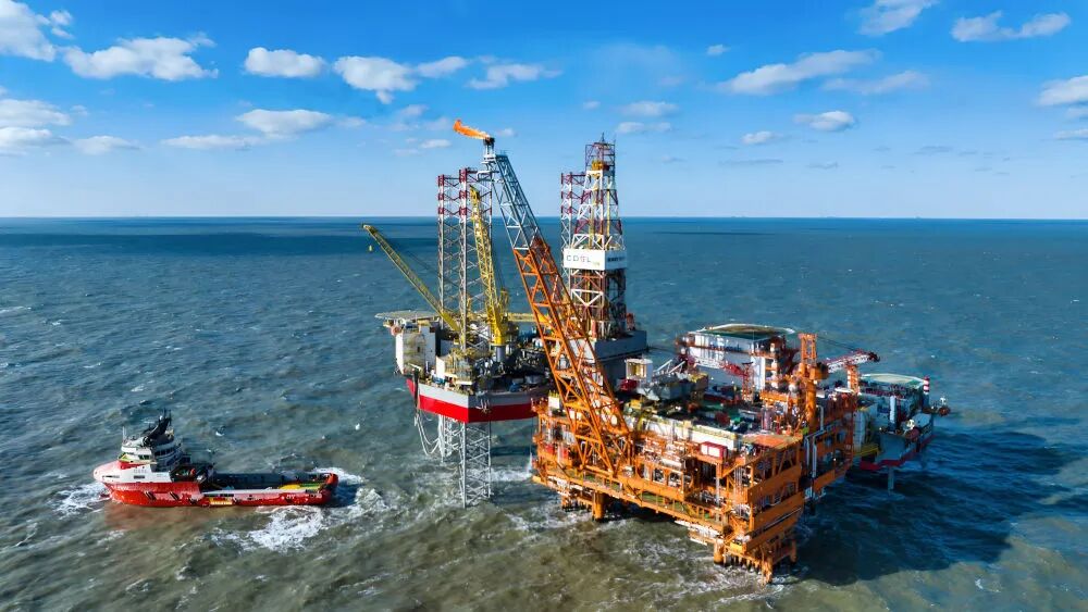 這是2025年2月8日拍攝的渤中26-6油田一期開發項目海上作業平臺(無人機照片)。新華社發(杜鵬輝 攝)