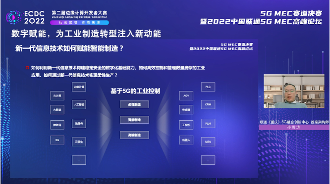 聯通(天津)產業互聯網研究院副院長艾艷可、聯通(重慶)5G融合創新中心首席架構師孫雪濤分別作了題為“5G MEC助力產業數字化轉型發展”“數字賦能,為工業制造轉型注入新動能”的主題演講。
