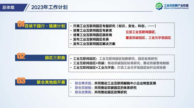 下一步,總體組將繼續(xù)推動工業(yè)互聯(lián)網(wǎng)園區(qū)相關(guān)工作,一是持續(xù)開展百城千園行·鏈接計劃,從專題研究、專家、服務(wù)商、解決方案、園區(qū)名錄等五個角度持續(xù)賦能工業(yè)和信息化部“百城千園行”活動;二是推動工業(yè)互聯(lián)網(wǎng)園區(qū)三部曲的研究和落地;三是聯(lián)合需求組推動中小企業(yè)數(shù)字化轉(zhuǎn)型,聯(lián)合雙碳組推動雙碳園區(qū)體系化研究,聯(lián)合政策組推動園區(qū)政策研究。