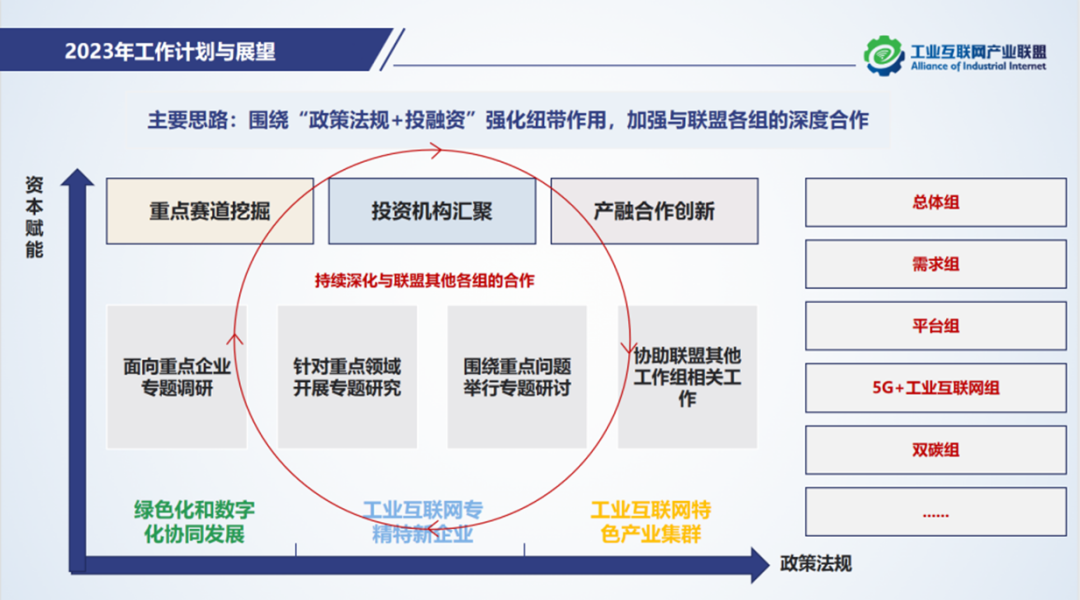 下一步,政策法規(guī)與投融資組將聚焦數(shù)字化綠色化協(xié)同、數(shù)據(jù)要素、投融資、工業(yè)互聯(lián)網(wǎng)園區(qū)、產(chǎn)業(yè)集群等持續(xù)開展相關(guān)研究,同時加強(qiáng)與聯(lián)盟內(nèi)其他工作組的交流溝通,為相關(guān)產(chǎn)業(yè)企業(yè)發(fā)展做好服務(wù)。