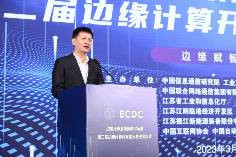2023年3月23日,由中國信息通信研究院(簡稱“中國信通院”)、工業互聯網產業聯盟(簡稱“AII”)、邊緣計算產業聯盟(簡稱“ECC”)共同主辦的邊緣計算發展高峰論壇暨第二屆邊緣計算開發者大賽頒獎儀式在江蘇省江陰市舉行。工業和信息化部信息通信管理局業務資源處處長趙陽,中國信通院總工程師敖立,江蘇省工業和信息化廳二級巡視員常如平,無錫市委常委、江陰市委書記許峰等領導出席活動并致辭。中國信通院技術與標準研究所副所長湯立波主持本次活動。