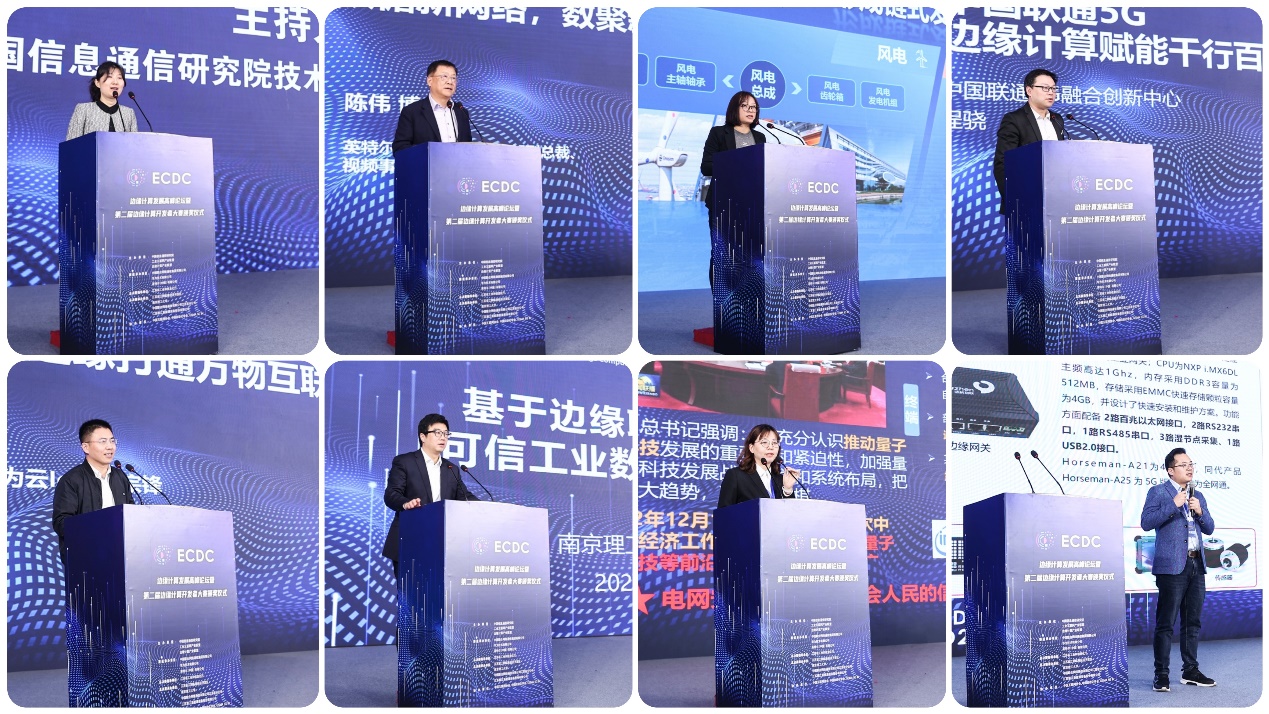 中國信通院技術與標準研究所產業互聯網研究部主任黃穎主持主題演講環節。英特爾公司網絡與邊緣事業部副總裁、視頻事業部總經理陳偉、江陰長江港口綜合物流園管委會主任周英、中國聯通5G融合創新中心區域拓展部總經理程驍、華為云IoT服務產品部CTO張宗鋒、南京理工大學教授李駿、大賽一等獎團隊圍繞邊緣計算技術應用實踐、江陰臨港產業集群發展戰略等主題進行了分享。