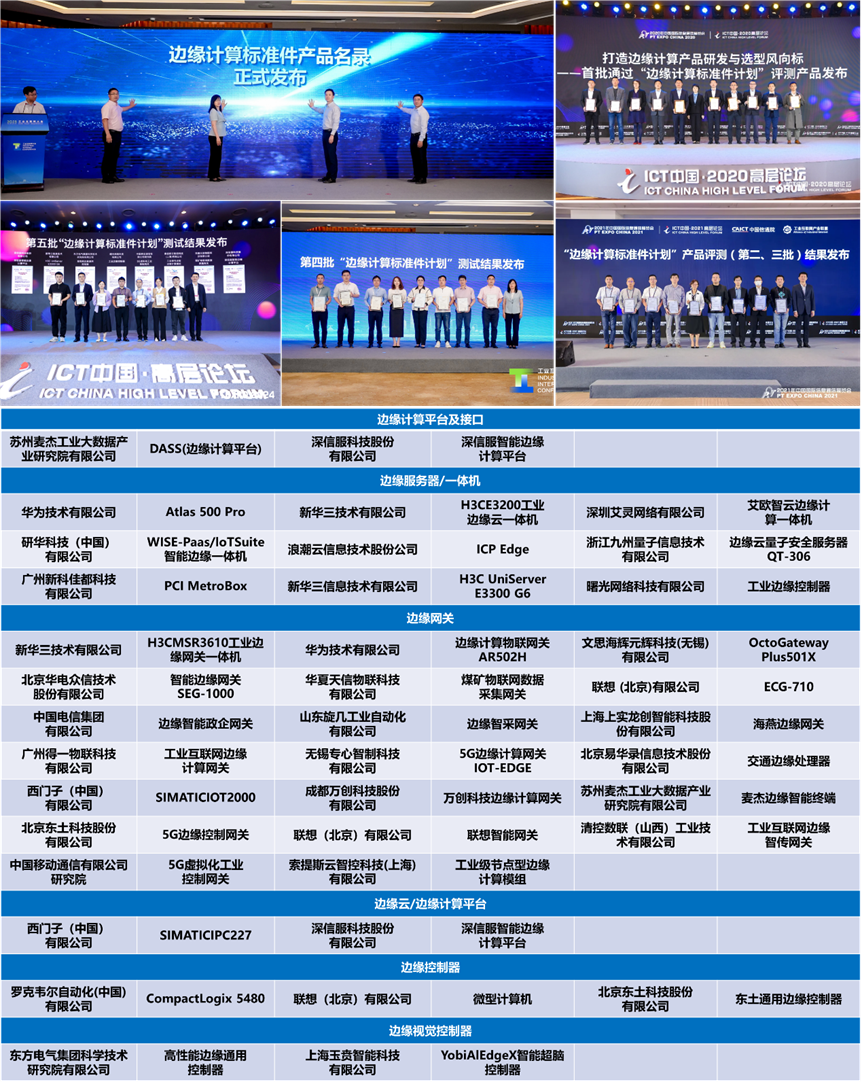 中國信通院積極開展邊緣計算研究工作,于2020年牽頭聯合產業各方發起“邊緣計算標準件計劃”,旨在形成“技術探索、標準研制、測試驗證、產品名錄、應用示范、規模商用”的產業閉環。2023年,《邊緣計算標準件產業名錄》正式發布,截止目前已收錄60余家企業的80多款產品,在助力設備研發與用戶選型同時,也為中國鐵塔、海爾等大型企業的設備更新集采提供支撐,有效推動邊緣計算產品規模化應用部署。