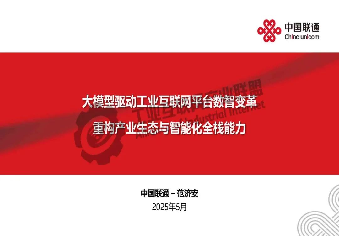 5月21日,在2025工業互聯網大會“工業互聯網數智融合創新發展專題活動”上,中國聯通大數據首席科學家范濟安發表了《大模型驅動工業互聯網平臺數智變革  重構產業生態與智能化全棧能力》的主題演講。
