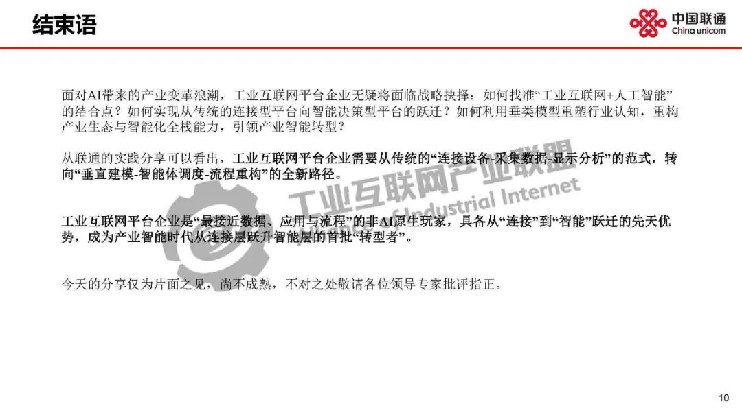范濟安介紹,面對AI帶來的產業變革浪潮,工業互聯網平臺企業無疑將面臨戰略抉擇。從聯通的實踐分享可以看出,工業互聯網平臺企業需要從傳統的“連接設備-采集數據-顯示分析”的范式,轉向“垂直建模-智能體調度-流程重構”的全新路徑。工業互聯網平臺企業是“最接近數據、應用與流程”的非AI原生玩家,具備從“連接”到“智能”躍遷的先天優勢,成為產業智能時代從連接層躍升智能層的首批“轉型者”。