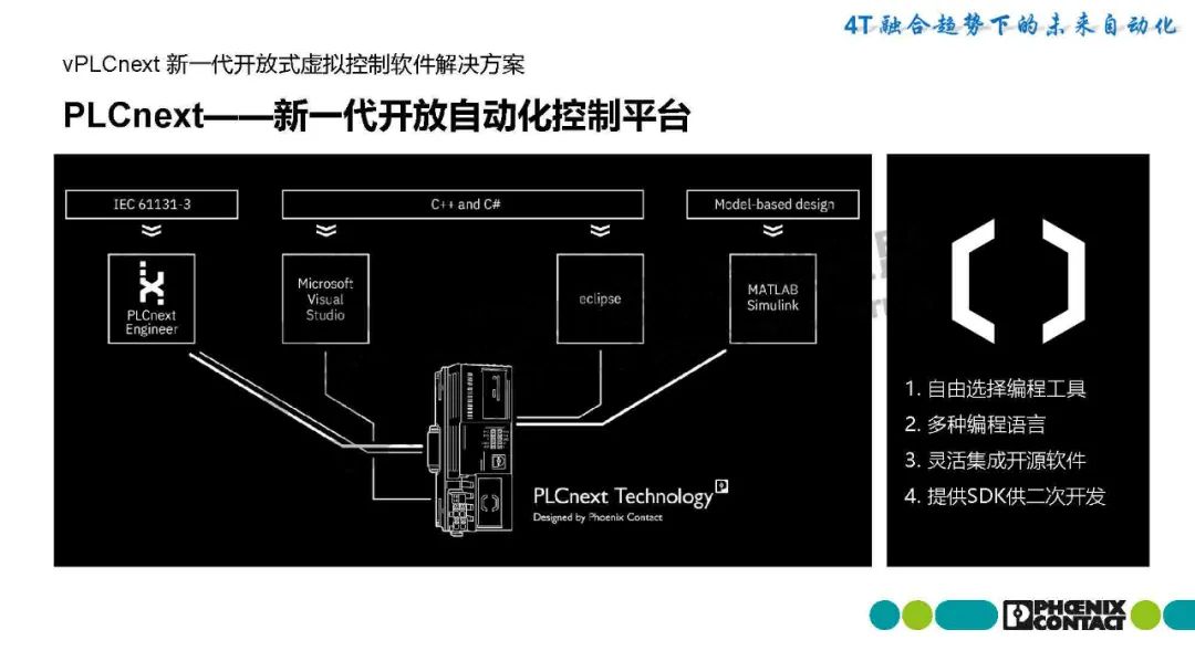 梁恩泉介紹,菲尼克斯電氣推出基于PLCnext技術(shù)的SoftPLC解決方案,突破傳統(tǒng)PLC硬件限制,實現(xiàn)虛擬化部署。該方案將PLC運行時環(huán)境(SoftPLC Runtime/eCLR)嵌入用戶硬件平臺,支持IEC 61131-3與C/C++等高級語言混合編程,并兼容工業(yè)機(jī)器人、數(shù)控機(jī)床等多場景需求。最新發(fā)布的PLCnext Virtual Control作為純軟件方案,可在通用硬件上動態(tài)創(chuàng)建PLC實例,實現(xiàn)功能靈活擴(kuò)展和集中維護(hù)。該技術(shù)通過IT/OT深度融合,集成開源生態(tài),為基礎(chǔ)設(shè)施、能源、工廠自動化等領(lǐng)域提供數(shù)字化底座,推動工業(yè)自動化進(jìn)入"硬件平臺化、軟件服務(wù)化"的新階段。