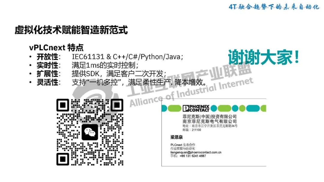 5月21日,在2025工業(yè)互聯(lián)網(wǎng)大會“工業(yè)互聯(lián)網(wǎng)數(shù)智融合創(chuàng)新發(fā)展專題活動”上,菲尼克斯電氣中國公司PLCnext軟件業(yè)務(wù)與生態(tài)經(jīng)理梁恩泉發(fā)表了《虛擬控制技術(shù)賦能智造新范式》的主題演講。