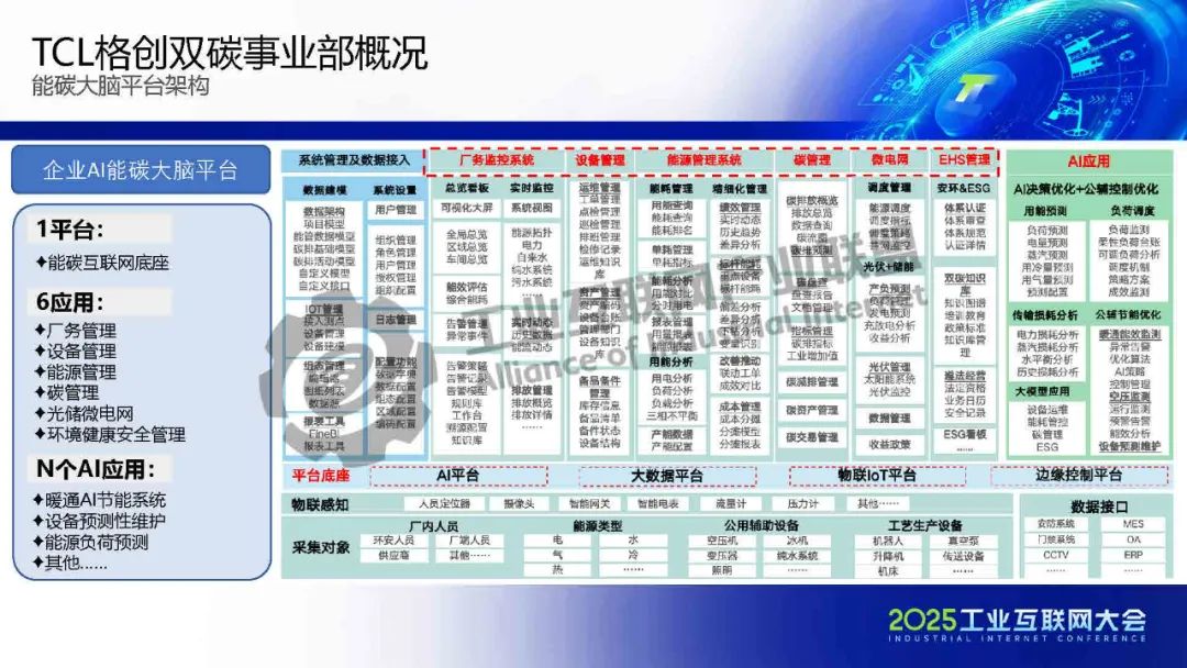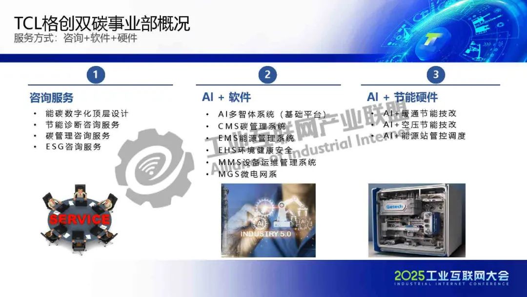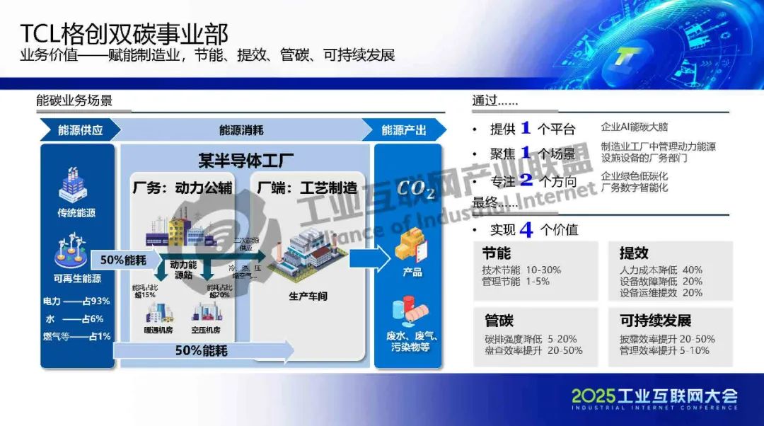 5月22日,在2025工業互聯網大會“工業數字化綠色化協同轉型專題活動”上,工業互聯網產業聯盟碳達峰碳中和工作組副主席、TCL格創東智科技有限公司能源雙碳事業部總經理王輝發表了《AI賦能高端制造業雙化協同轉型》的主題演講。