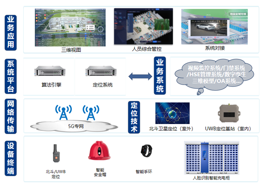 5G智能安全帽通過“5G+實時音視頻通信+北斗/UWB高精度定位”多技術融合,構建了覆蓋“高危作業安全管控-環境風險實時監測-應急響應智能協同”的全場景解決方案,實現現場巡檢人員的高清音視頻通話、高精度定位等功能。后臺指揮人員能夠實時、準確地掌握各巡檢人員的具體位置,并直觀、及時地了解現場狀況,從而準確預防、判斷和解決問題。這一技術解決了傳統凈化廠在高危區域監管上的盲區、復雜環境下定位失效以及應急響應滯后等關鍵問題,滿足項目現場安全規范行為檢測、環境風險預警、人員狀態監測和精準定位需求。