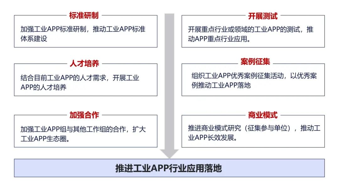 下一步工業APP特設組將圍繞重點行業和領域的工業APP開展測試,收集工業APP建立優秀服務商庫,加強人才方面的培養和認證等,積極推動工業APP在制造企業的應用落地。