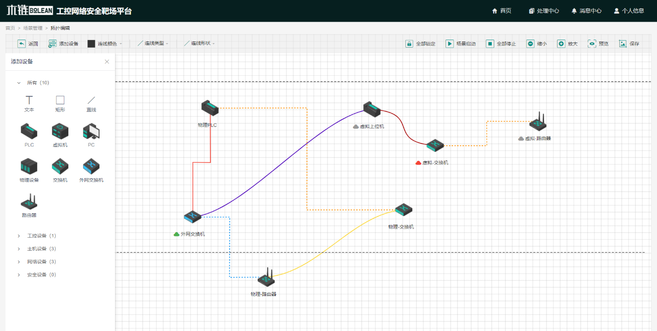 根據劇情所設定的工控系統典型場景進行仿真部署,對工控系統設備、網絡、安全產品進行布置并完成相應參數配置;