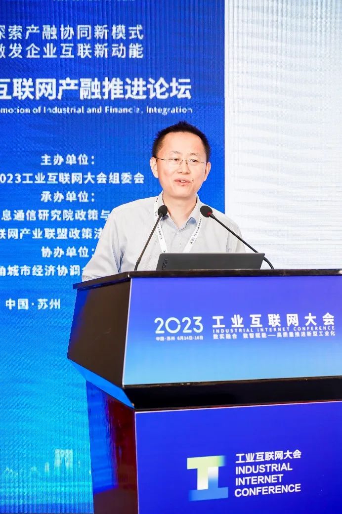 2023年6月14日,工業互聯網產融推進分論壇在江蘇蘇州舉辦。本次論壇以“探索產融協同新模式  激發企業互聯新動能”為主題,是2023工業互聯網大會的重要板塊。論壇由中國信息通信研究院、工業互聯網產業聯盟聯合承辦,長三角城市經濟協調會物聯網專委會、產融合作生態聯合創新計劃協辦。來自地方政府、高校院所、金融機構和企業的專家學者參加了本次論壇。