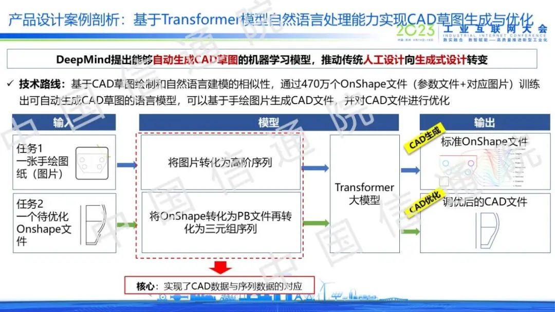 以產(chǎn)品設(shè)計(jì)場(chǎng)景為例,通過利用Transformer模型的自然語言處理能力提升研發(fā)效率。其本質(zhì)是將輸入的CAD數(shù)據(jù)轉(zhuǎn)化為序列數(shù)據(jù)以充分適配Transformer模型,通過構(gòu)建研發(fā)領(lǐng)域大模型實(shí)現(xiàn)CAD圖像生成與優(yōu)化功能,這意味著傳統(tǒng)人工設(shè)計(jì)正加速向生成式設(shè)計(jì)轉(zhuǎn)變。